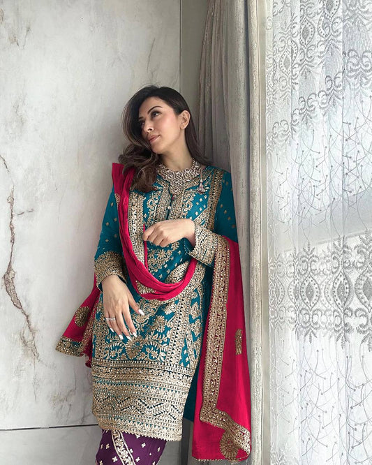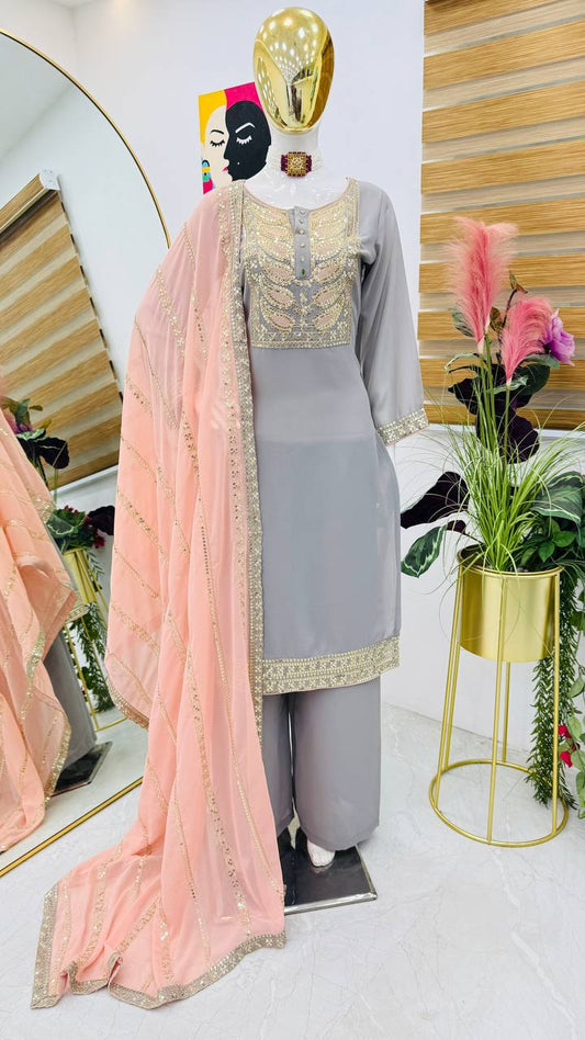 New Designer Party Wear Kurti , Bottom With Dupatta – Embroidery Sequence Work By WTW