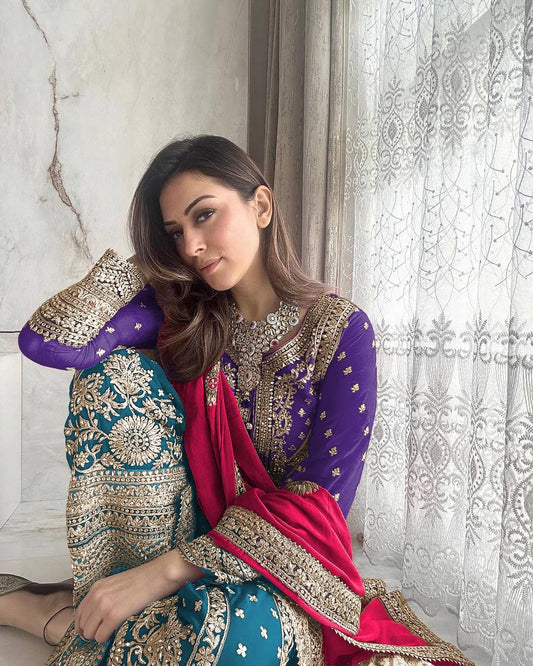 Mystical White Color Georgette Embroidery Sequins Sharara Suit By WTW