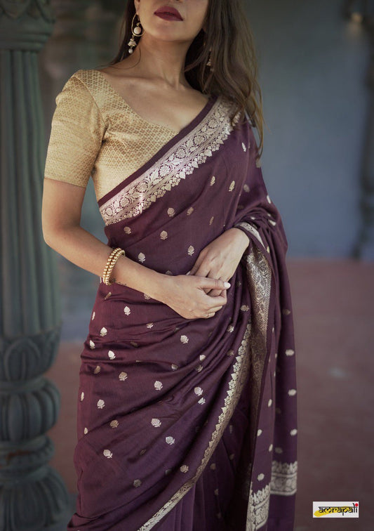 Pure Banarsi Silk Saree With Brocade Blouse By WTW