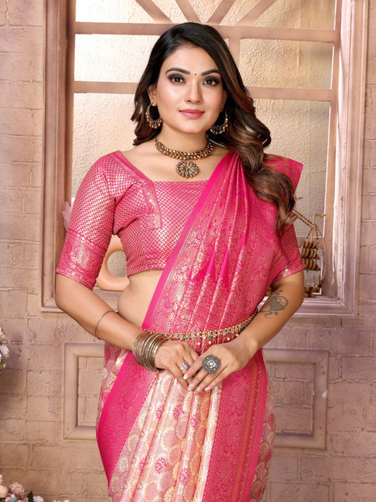 Classic Rani Color Soft Lichi Silk Cloth Rich Pallu Work Saree By WTW