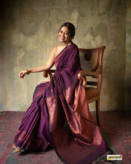 Cotton Silk Plum Purple Woven Zari Casual Wear Saree By WTW