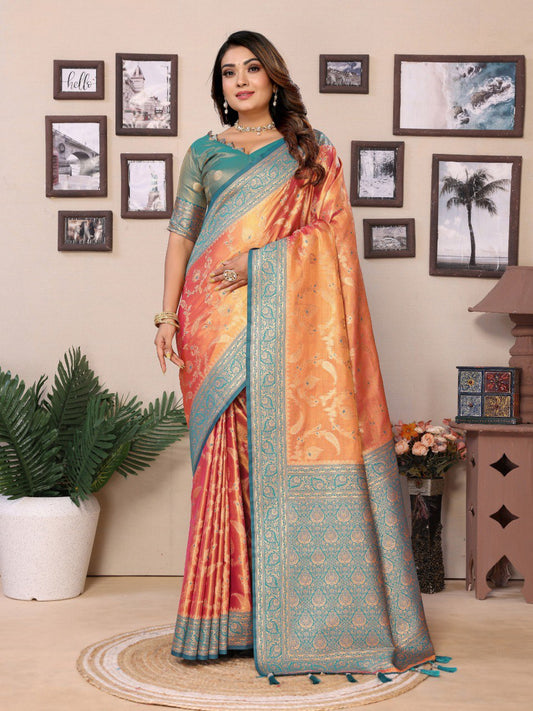 Dark Peach Banarasi Silk Saree With Blouse Piece By WTW