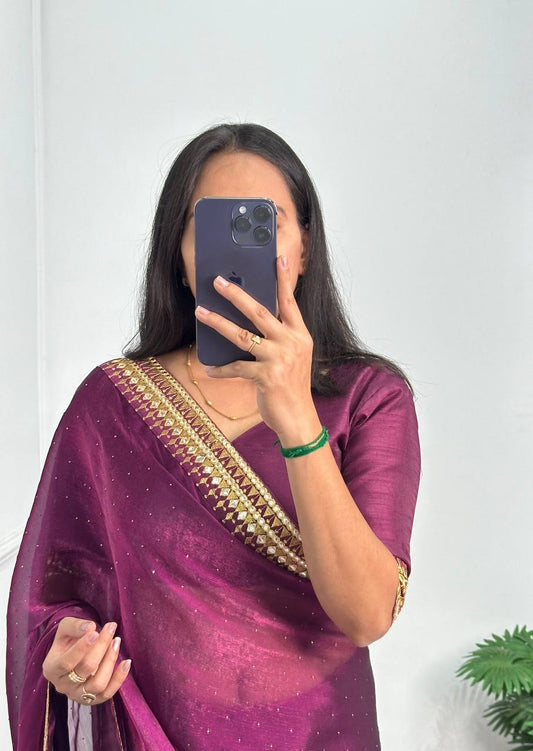 Classic Purple Color Burberry Foil And Zari Embroidery Work Saree By WTW