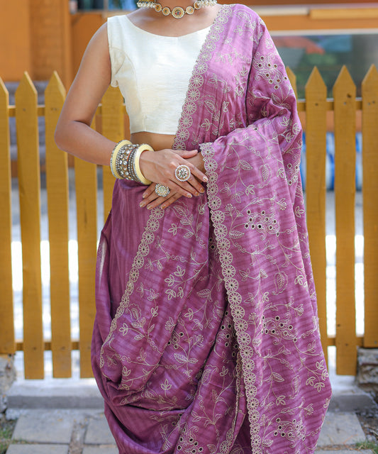 Lavender Heavy Tibby Silk Sequence Work Saree With Blouse By WTW