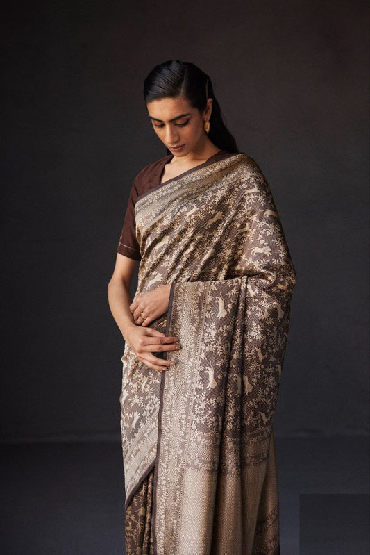 Maroon Pure Katan Silk Banarasi Shikargah Handloom Saree By WTW