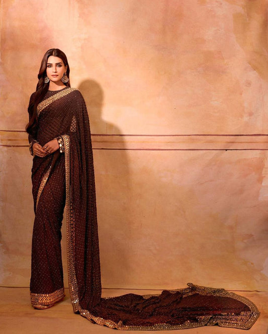 Hot Ruby Red Sequined Georgette Party Wear Saree By WTW