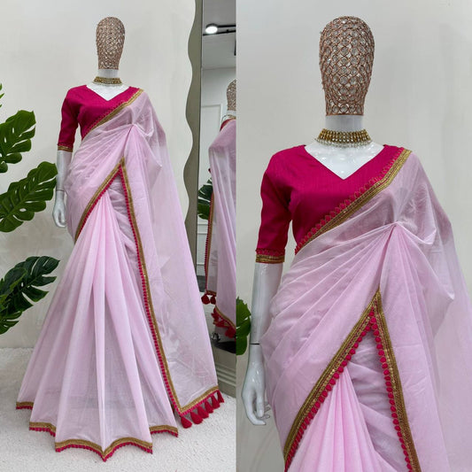 Light Pink Tissue Shimmer Women’s Saree By WTW