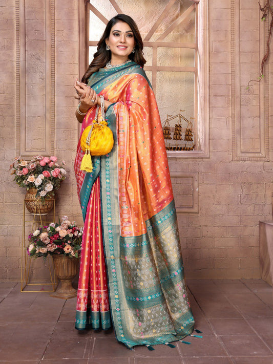 Orange Elegant Pure Gaji Silk Bandhani Patola Print Saree By WTW