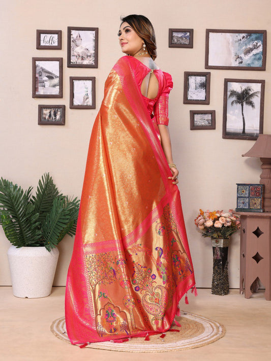 Paithani Silk Hot Pink Festival Wear Weaving Saree By WTW