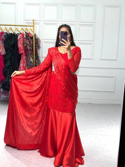 Opulent Red Color Attached Dupatta Lehenga Saree By WTW