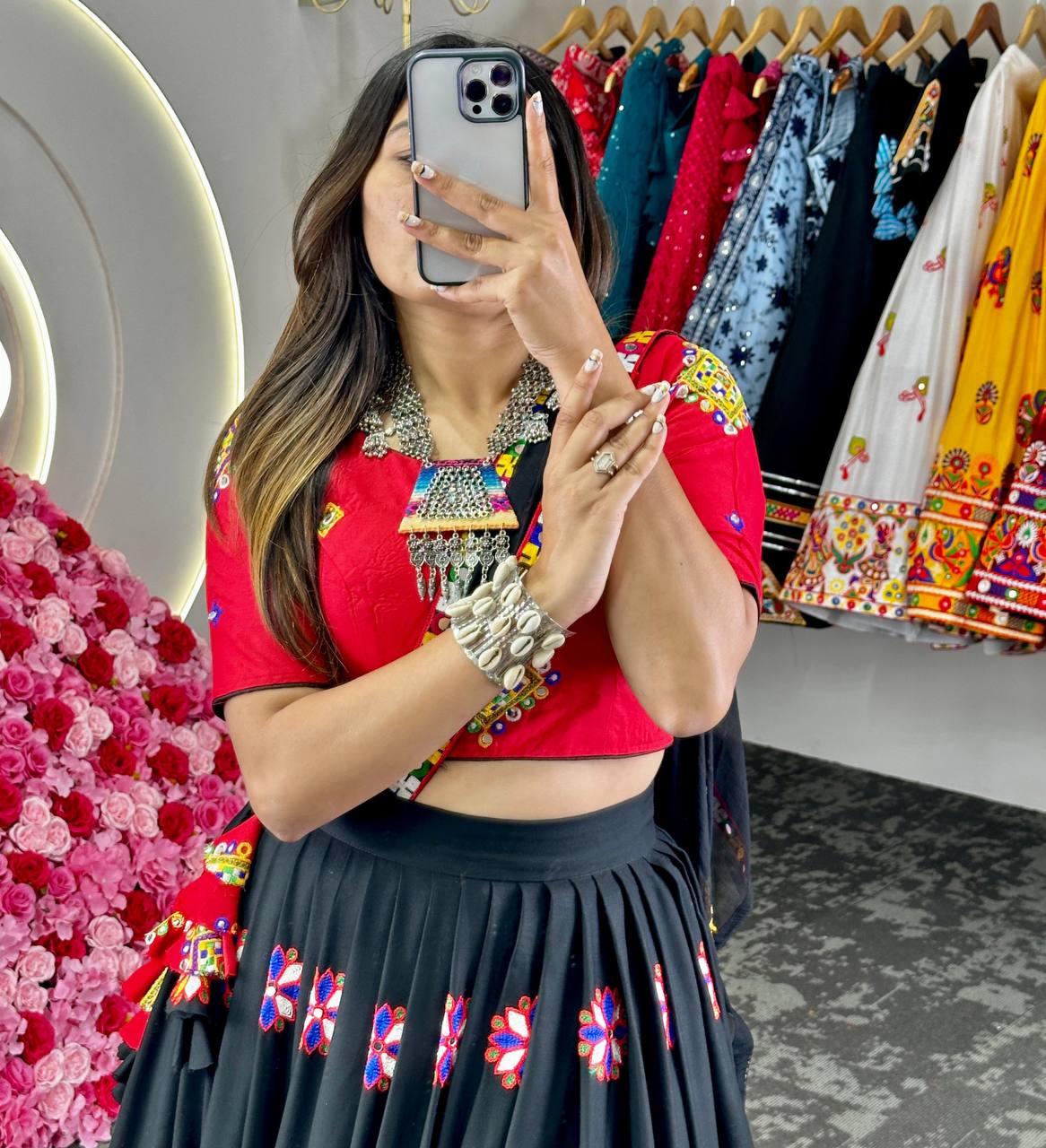 Black Ryon Cotton Chain Stitch Work Lehenga Choli By WTW