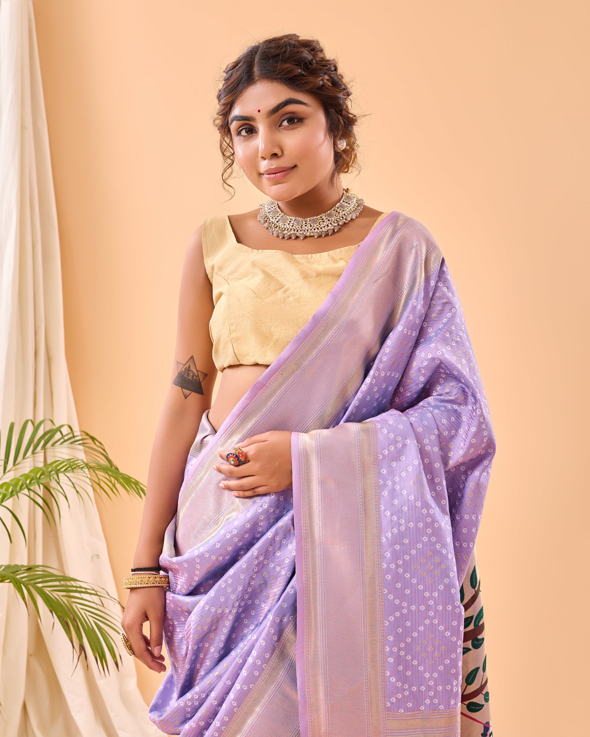 Lavender Bandhani Weaving Paithani Silk Saree By WTW