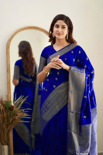 Pleasant Royal Blue Soft Silk Saree With Delightful Blouse Piece By WTW