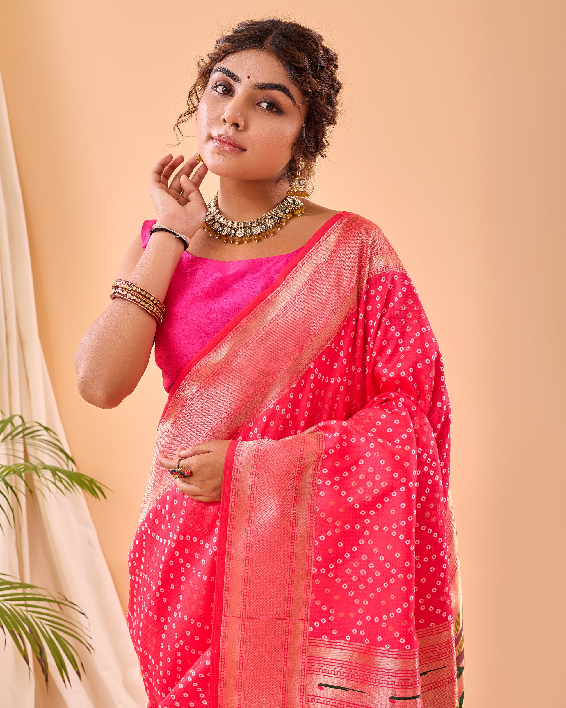 Pure Soft Designer Beautiful Bandhej Paithani Patola Silk Saree By WTW