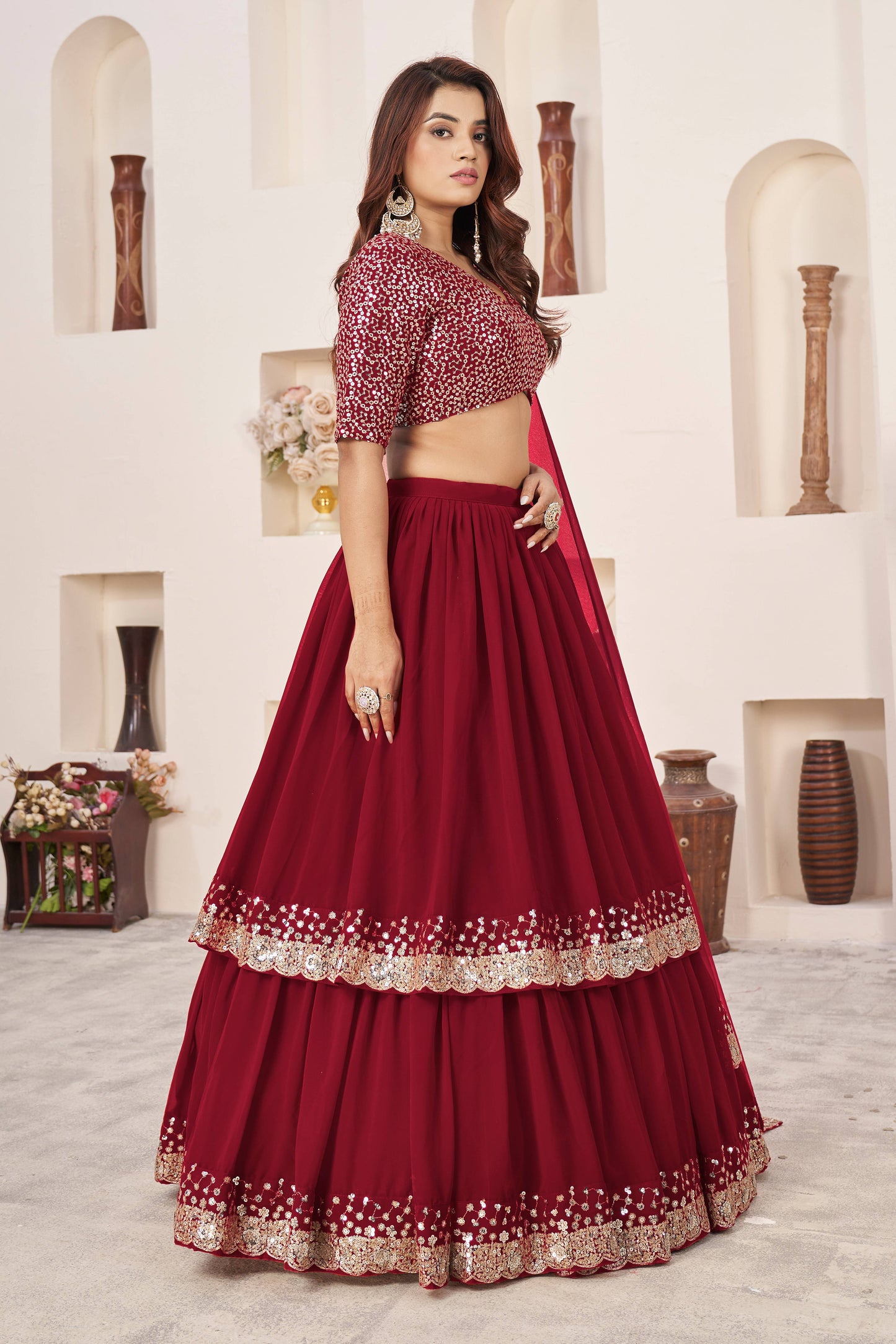 - Turn heads at any wedding or function with our stunning red georgette lehenga choli set.