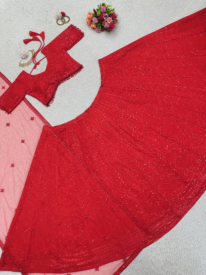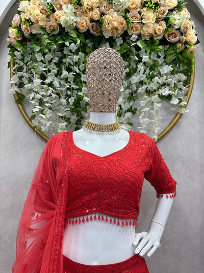 Stylish Red Colour Heavy Sequence Work Lehenga Choli By WTW
